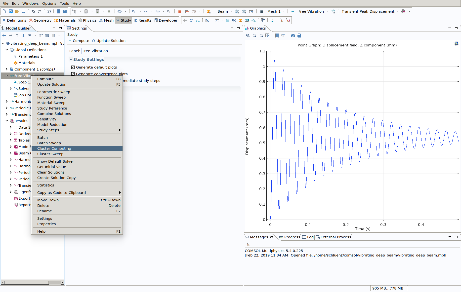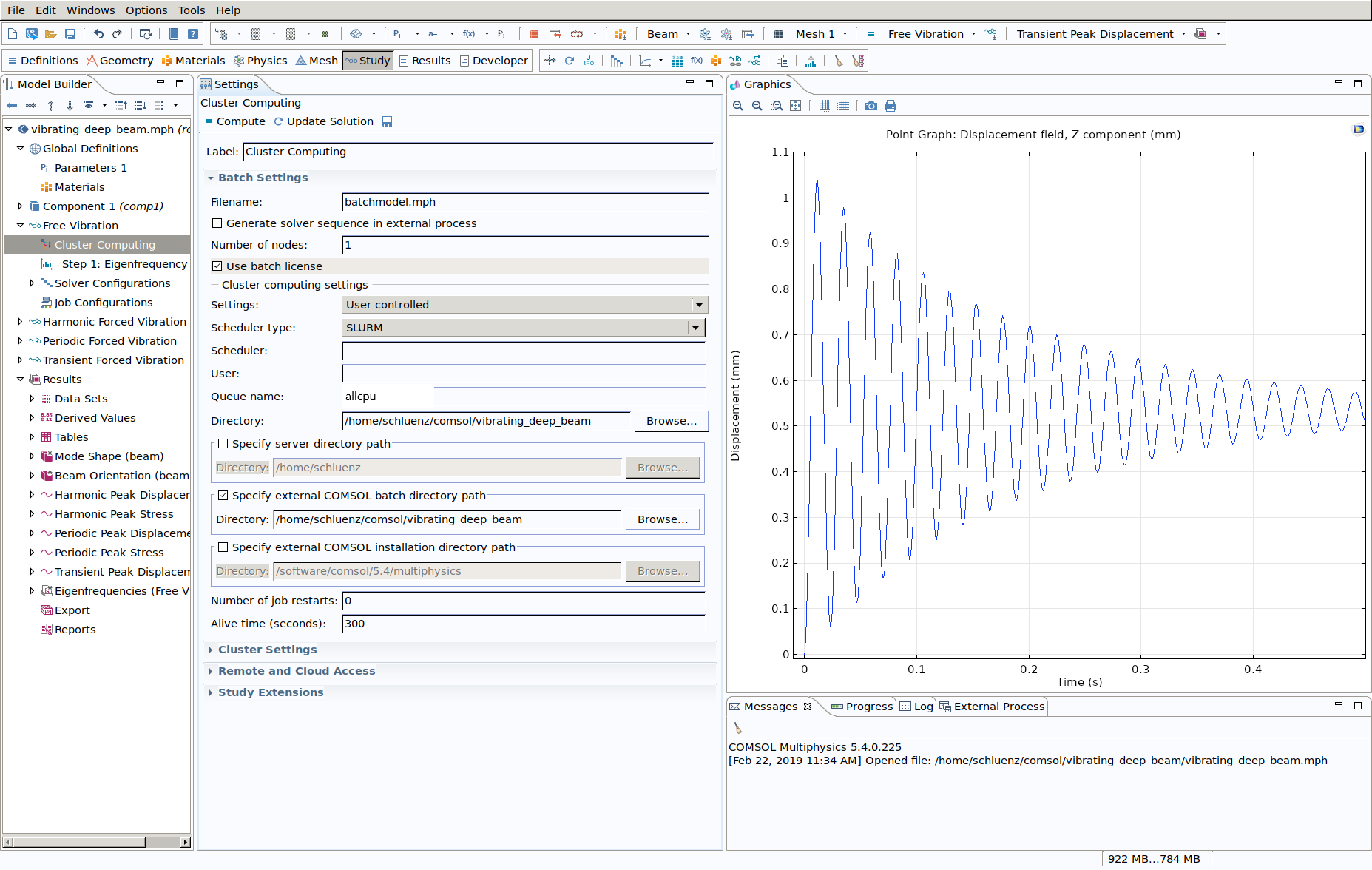 It's fairly easy to submit a batch job directly from the COMSOL GUI. A detailed description can be found under https://www.comsol.com/blogs/how-to-run-on-clusters-from-the-comsol-desktop-environment/. A simple example based on the "vibrating deep beam tutorial":