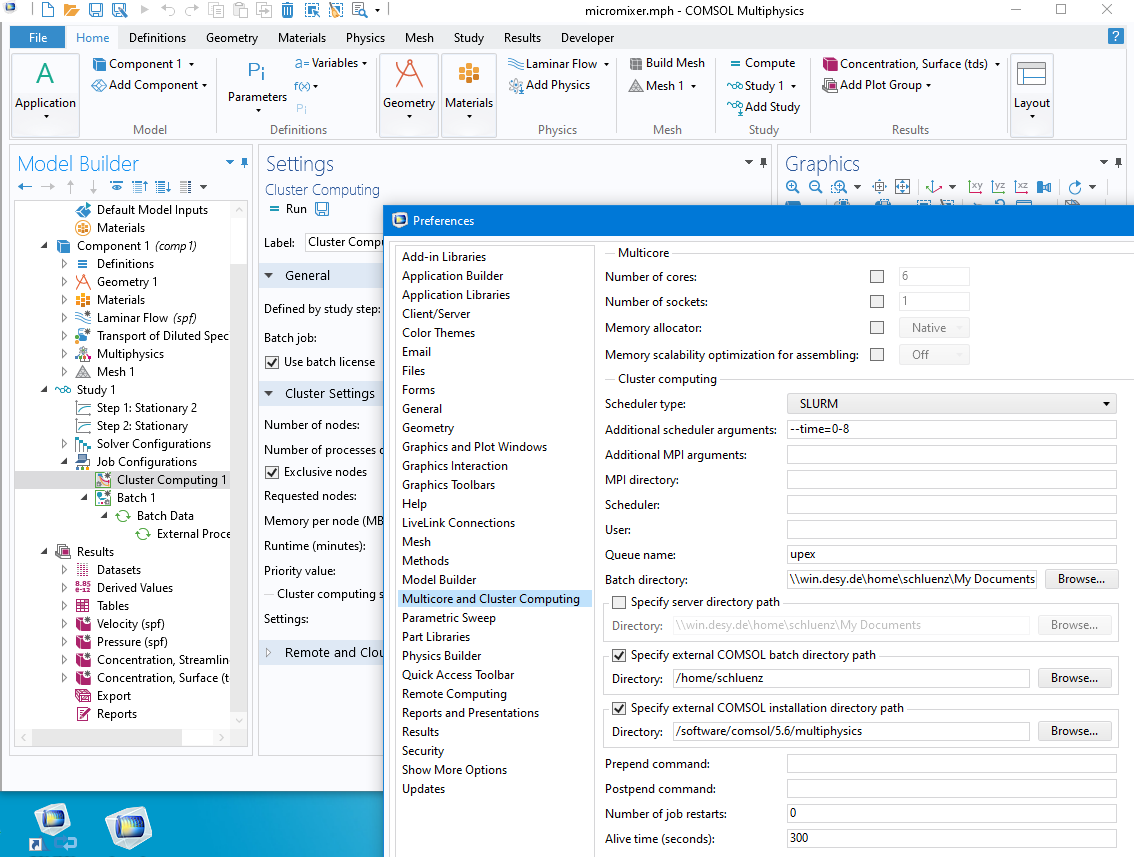 Comsol v5.3 and newer natively support SLURM as a scheduler, which makes it very simple to launch Comsol batch-jobs on the Maxwell Cluster.