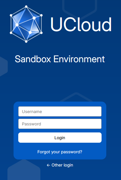 To visit the UCloud open: https://sandbox.dev.cloud.sdu.dk/app/login