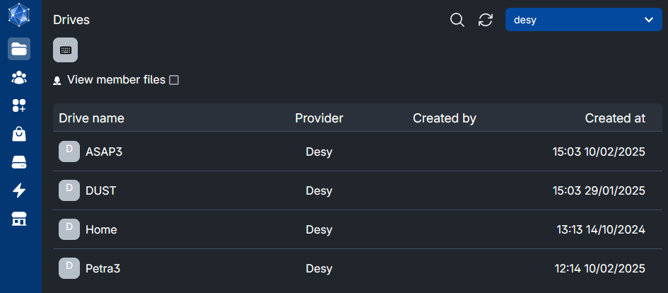 On the left side of the website you can find some signs, under the sign of a folder, you can find the different drives. You can select a drive here and create, edit and delete folders and files in it.