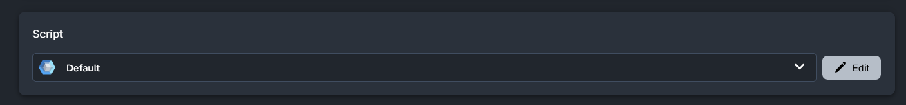 When selecting the application, there is a line with the heading Script. Here, we can edit scripts to execute the application. Click on default and select “create a new script” or use "edit" to create your own working script.