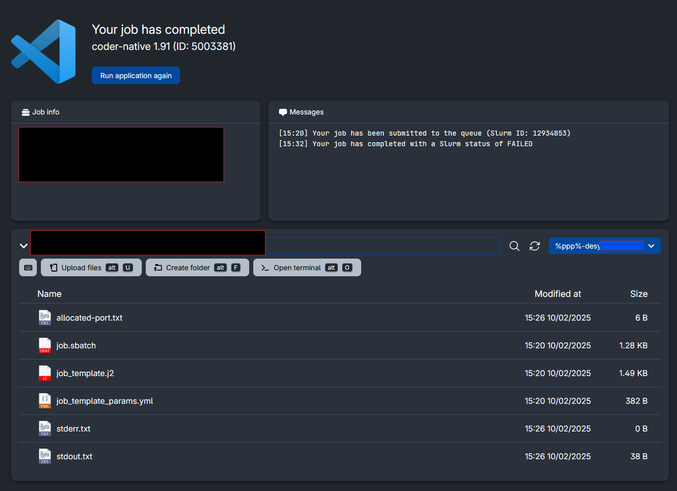It is also possible to go directly to your home directory and view the file there. To do this, go back to the file explorer on the left-hand side of the menu. At the top right you will find a drop-down menu where you select “My workspace”. Now you can find your home directory and search for files that were created when running jobs.